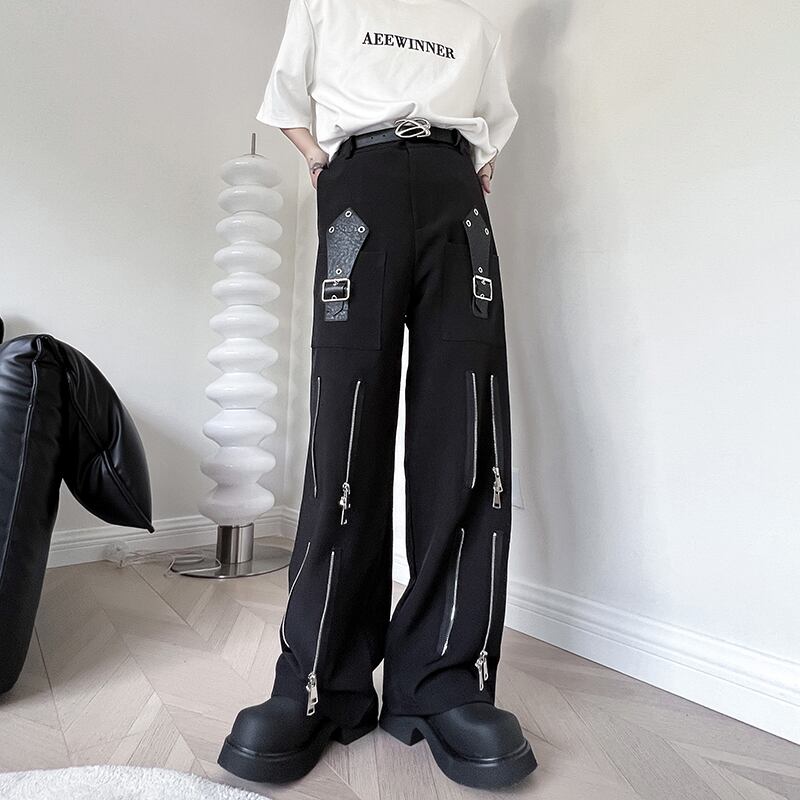 ブラック ロングパンツ チャック ロック ストレートパンツ 【GL135】 | Glow360