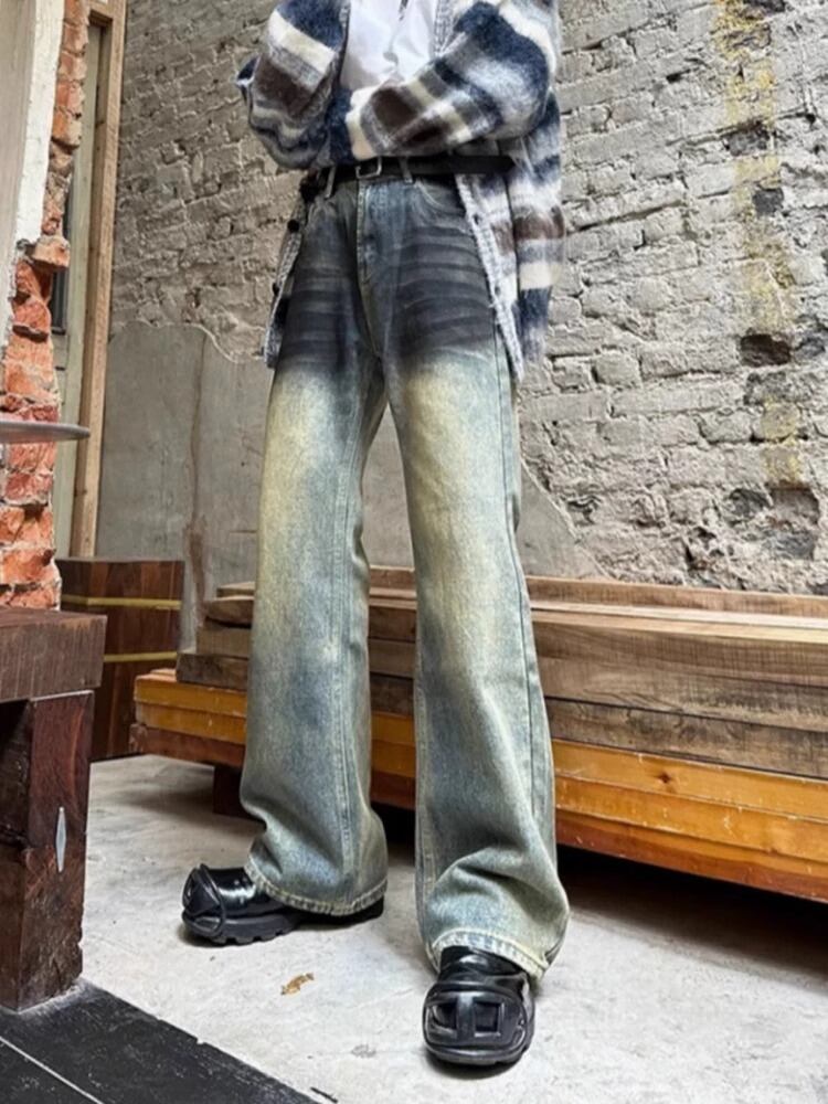シンプルでありながら個性的な、グラデーションデニムのウォッシュ加工が施されたブルー&ブラックのダメージデザインです!