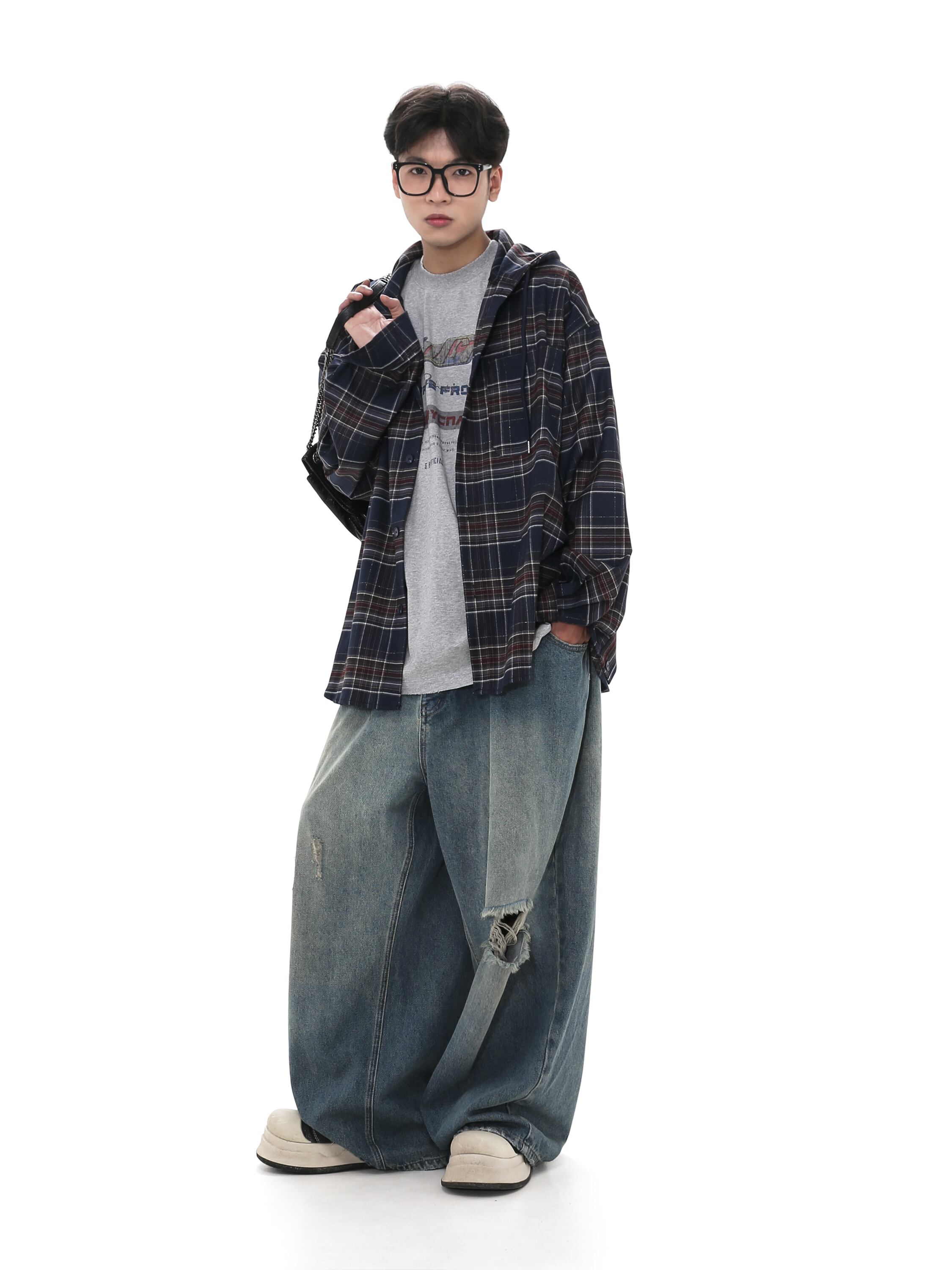 レトロなチェック柄が特徴的なフード付きシャツです!