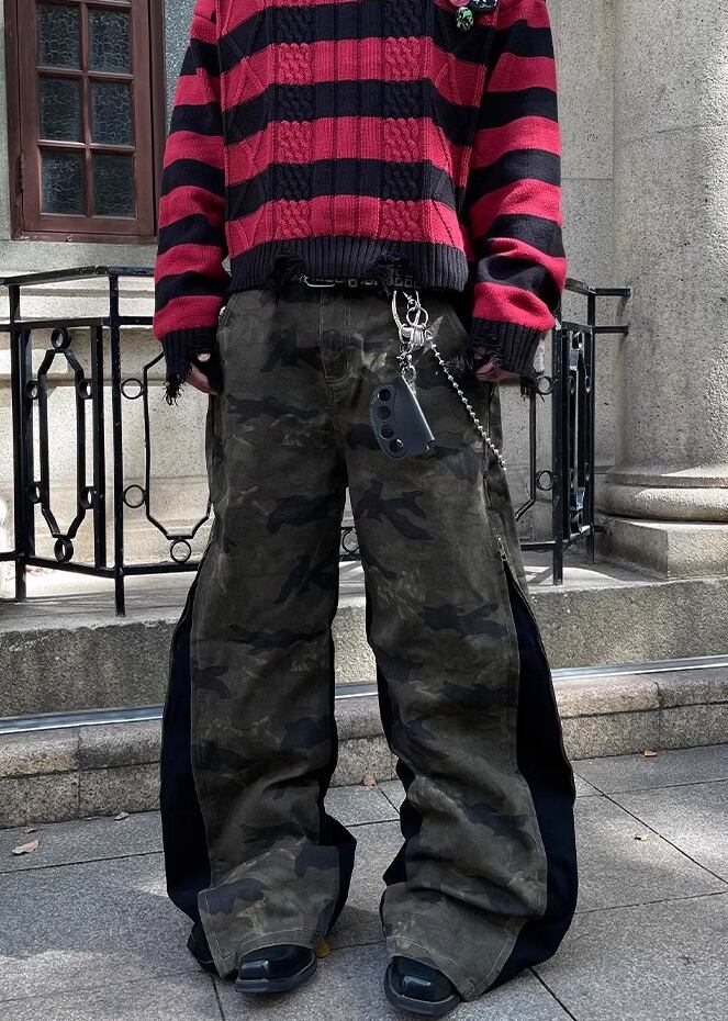 トレンド感あふれるカモフラージュ柄が特徴のワイドレッグパンツ!