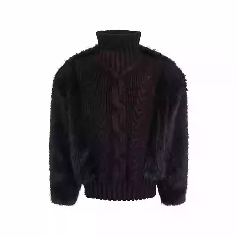 秋冬シーズンにぴったりなファータートルネックセーターで、もこもこした質感が心地よい暖かさを提供します。