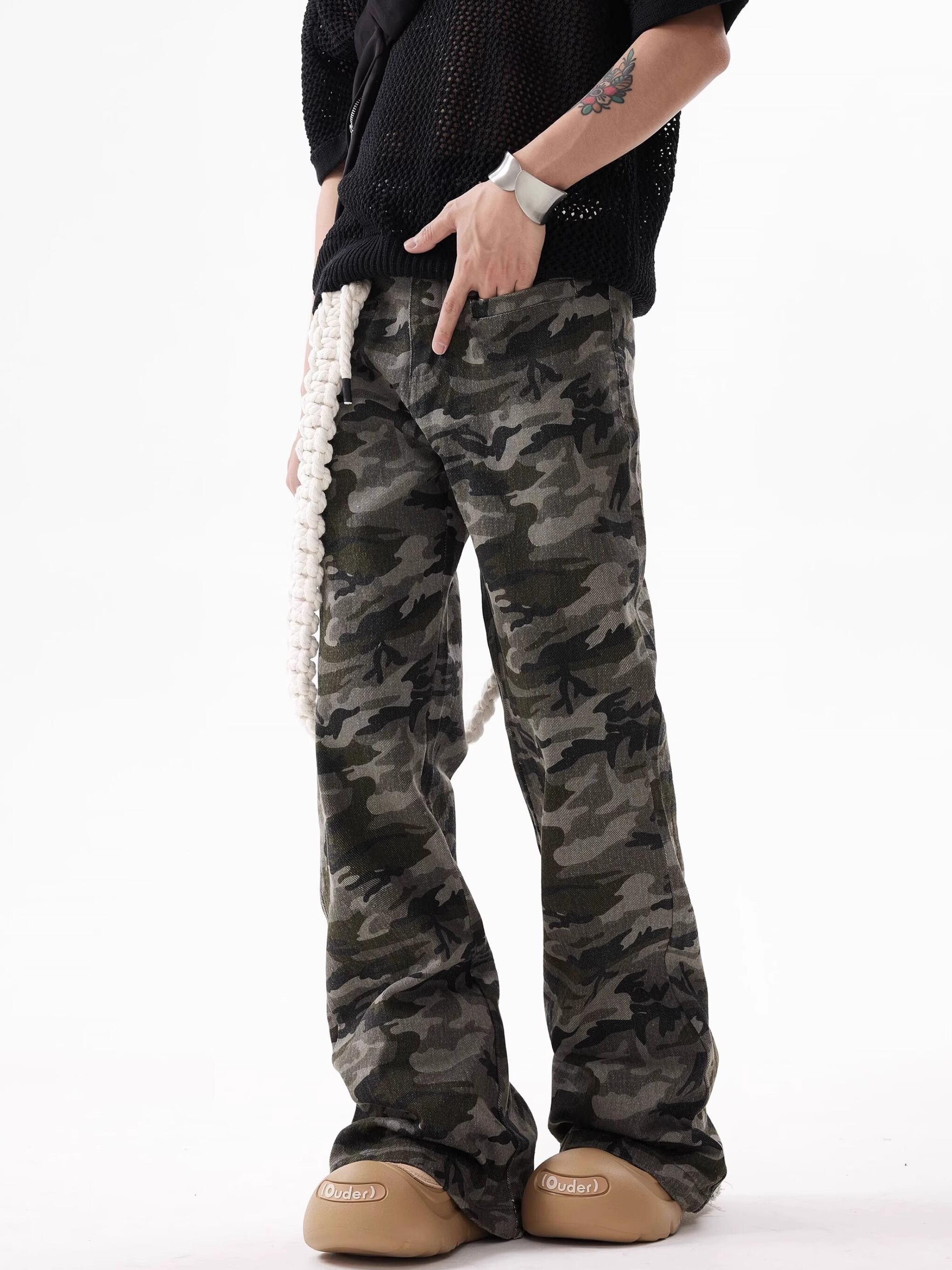 トレンド感たっぷりの迷彩カモフラージュデザインが印象的なフレアパンツです!