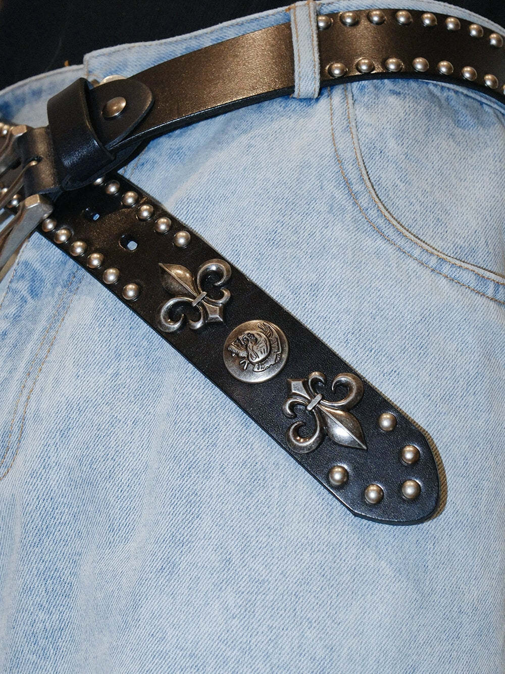 FLEUR STUDDED LEATHER DROP BELT 【GL446】 | Glow360