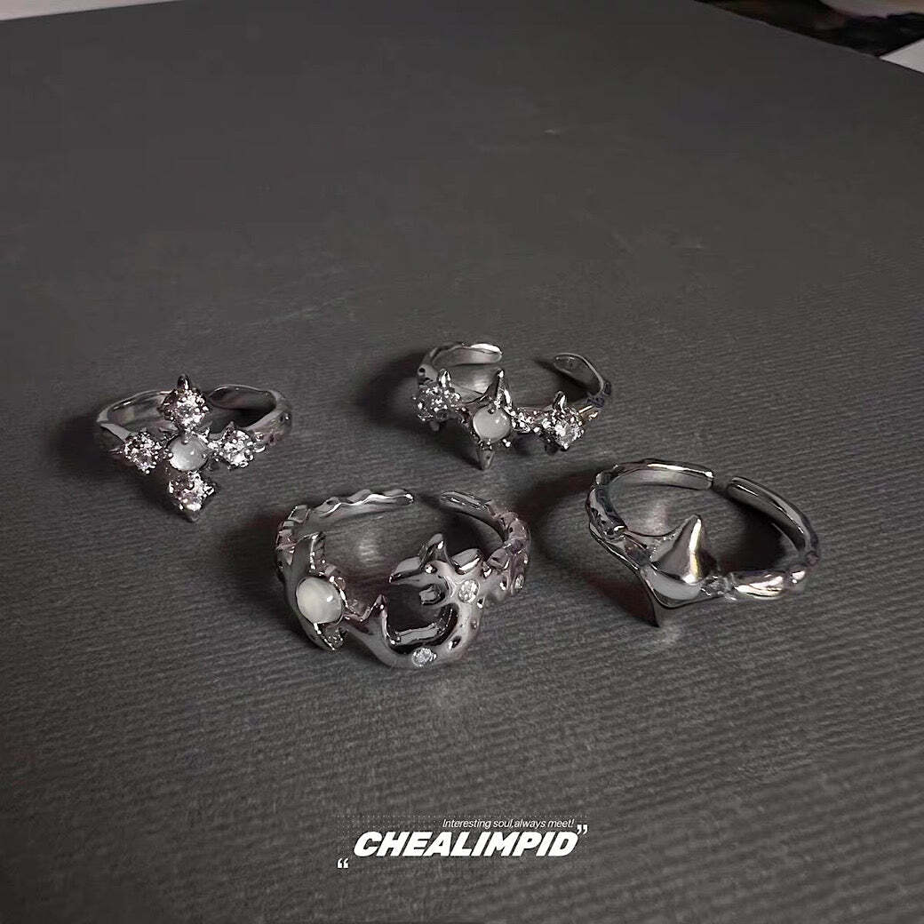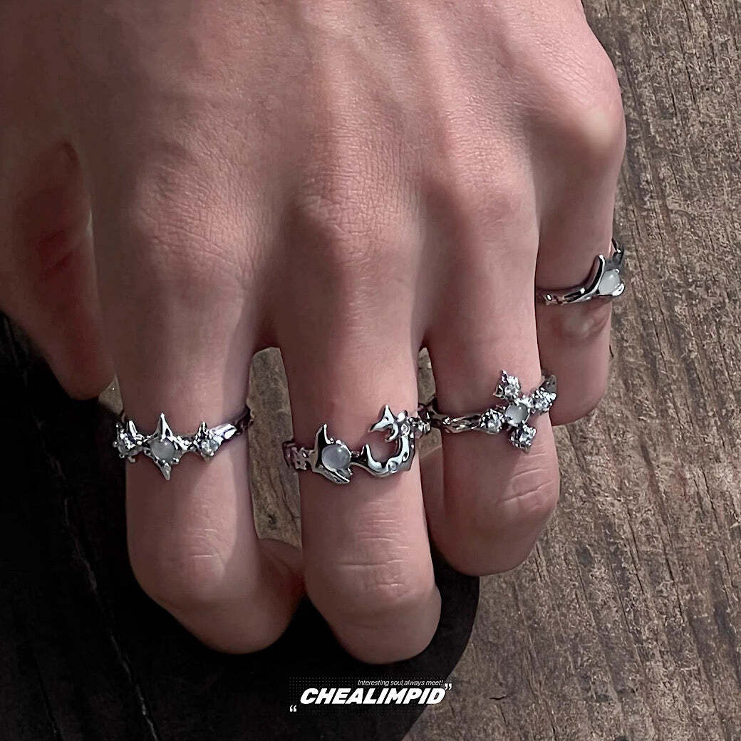 シルバーカラーで統一感を引き出しやすく、ゴツメなデザインで印象的なスタイルに。