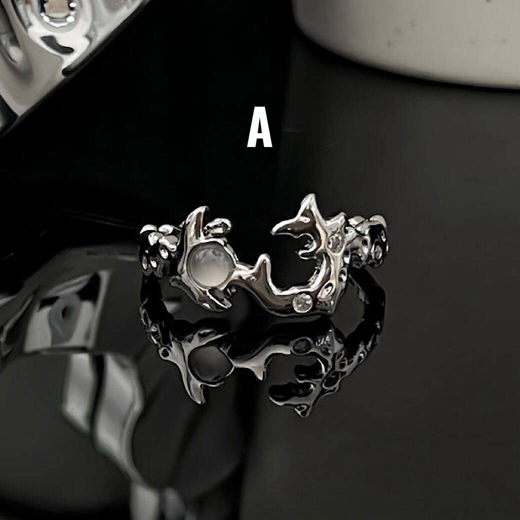 特徴的なデザインで構成されたリングアイテム。