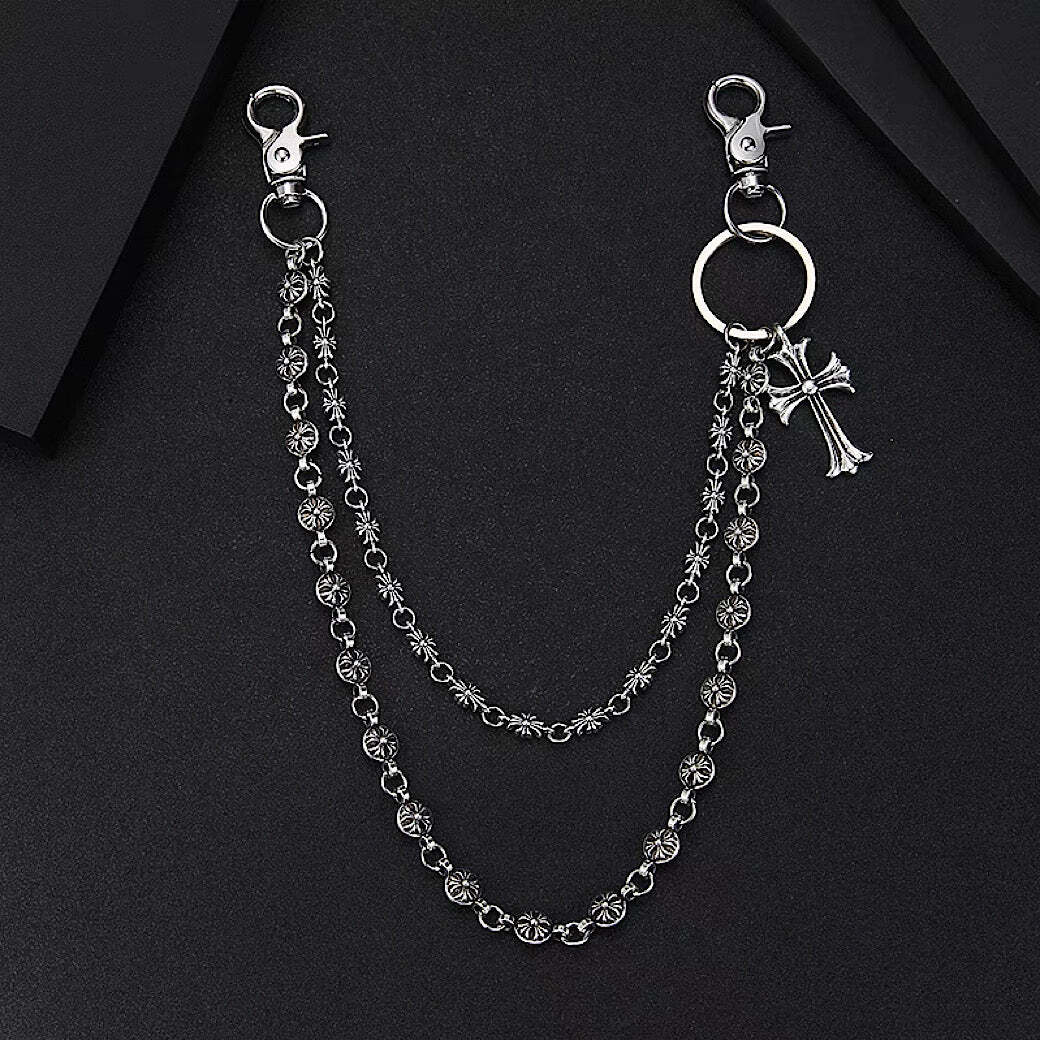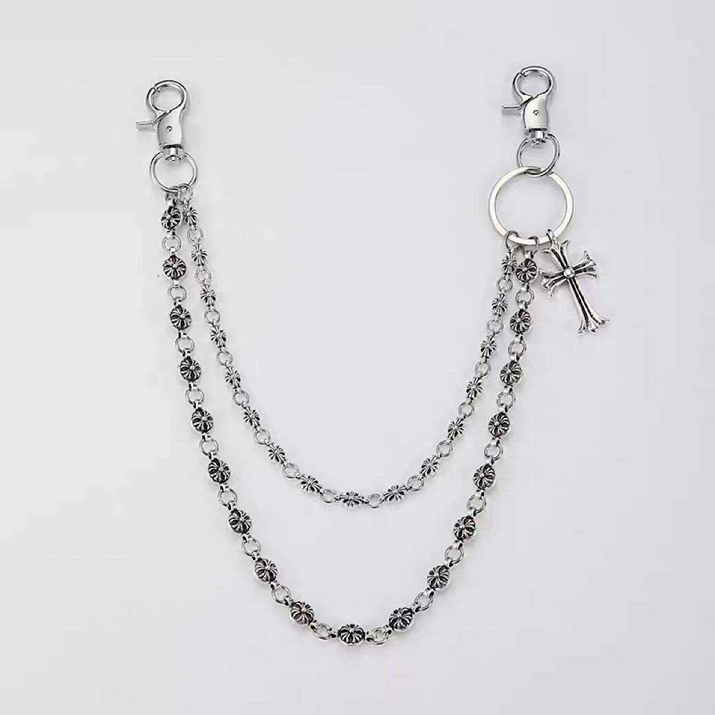 Double Design Basic Silver Cross Wallet Chain 【GL530】
