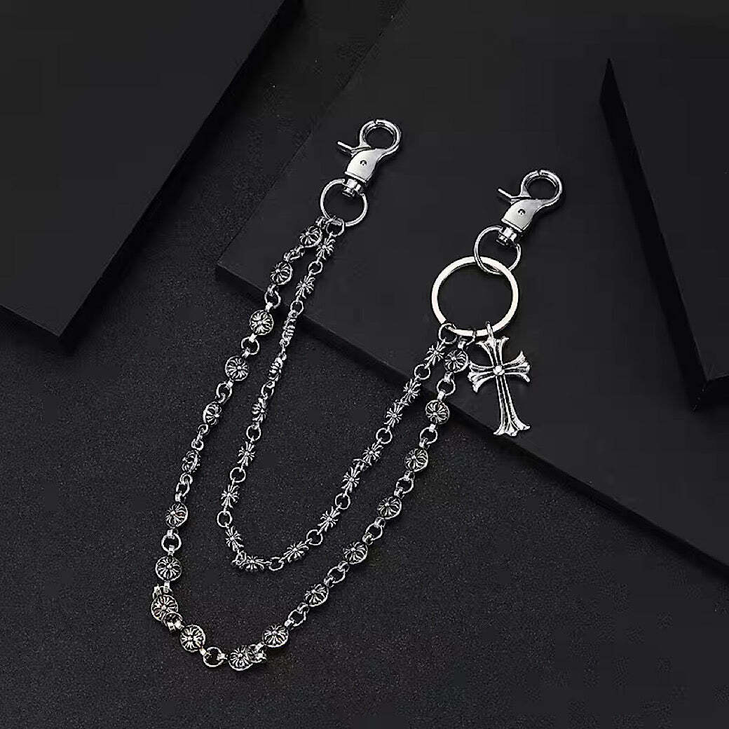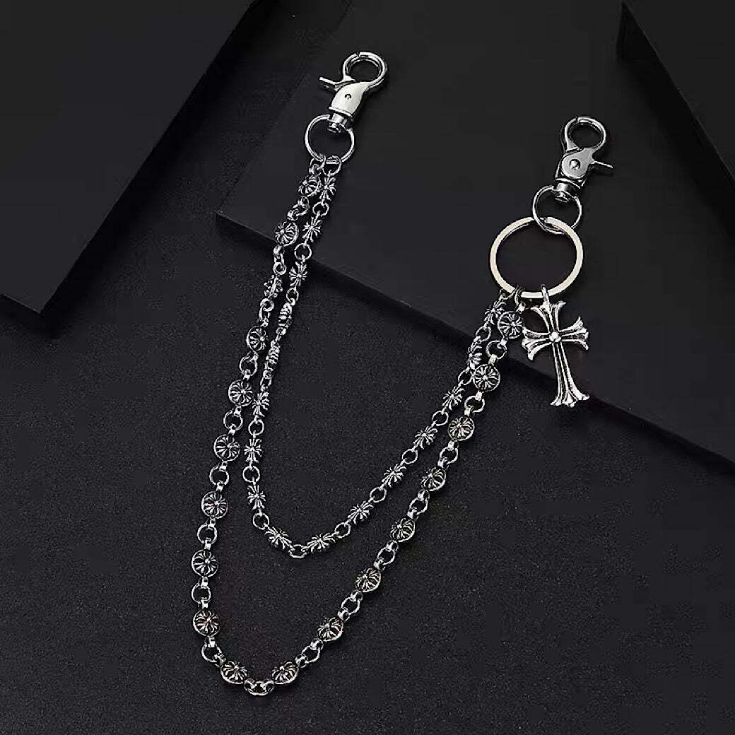 ワンポイントで十字架が加えられたウォレットチェーン。