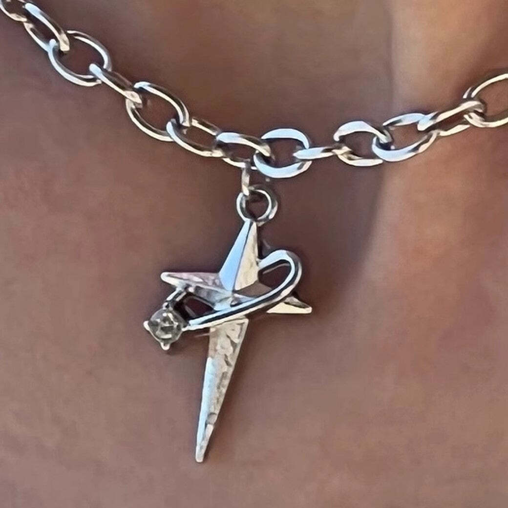 シルバーカラーで万能に扱いやすく、グランジやY2Kのスタイルで雰囲気も抜群。