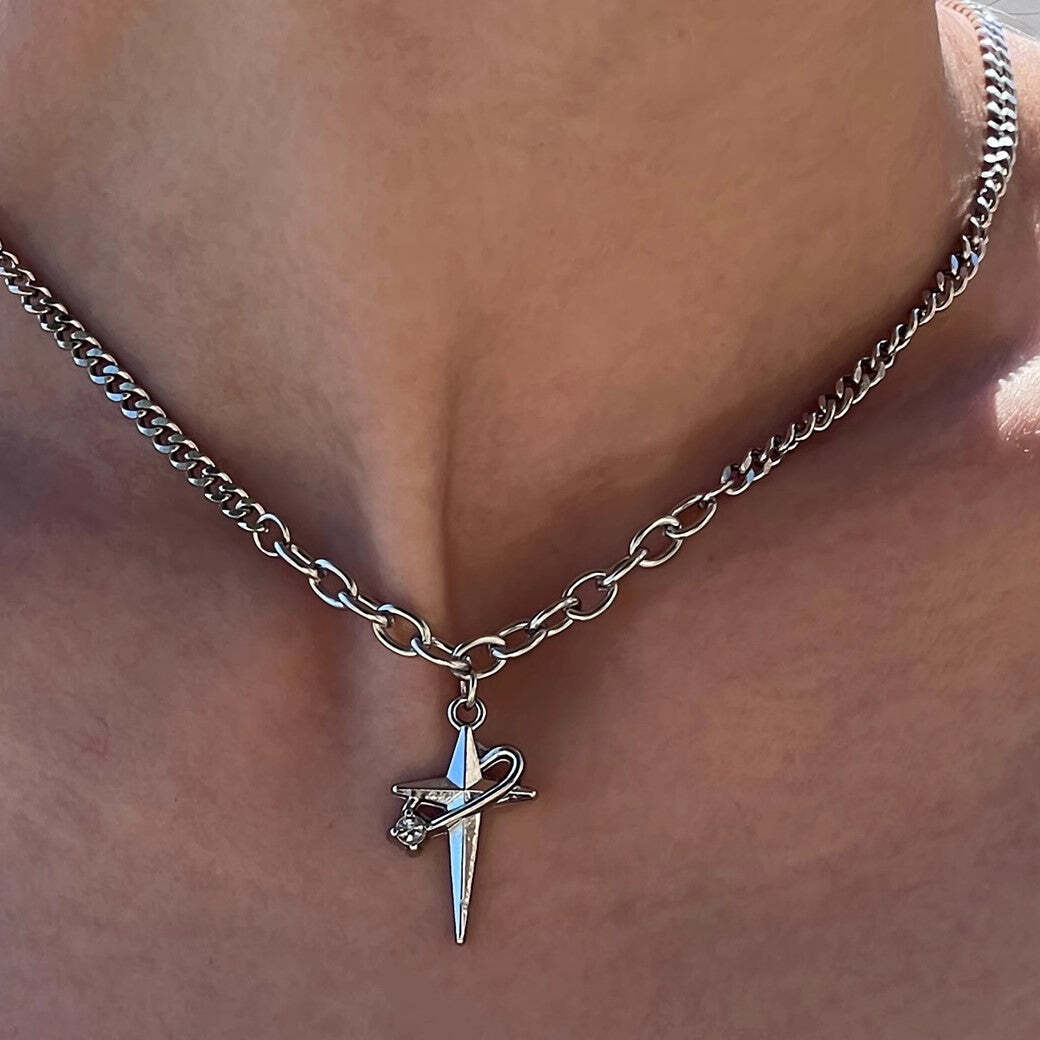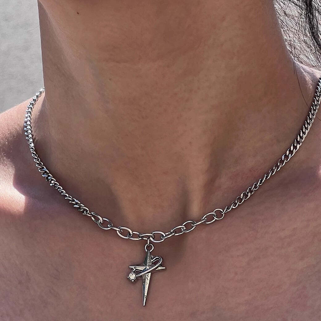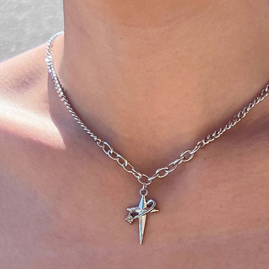 特徴的な十字架デザインで構成されたネックレスアイテム。