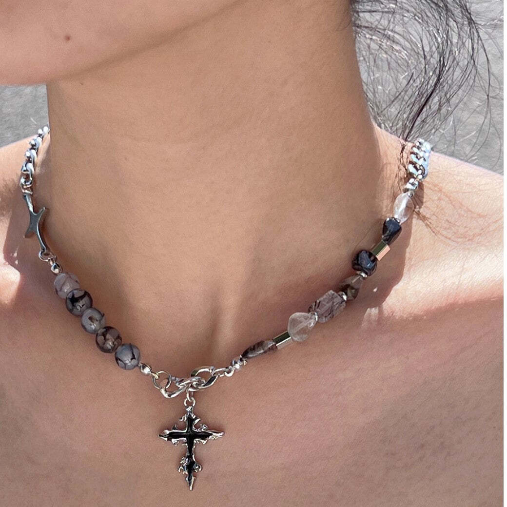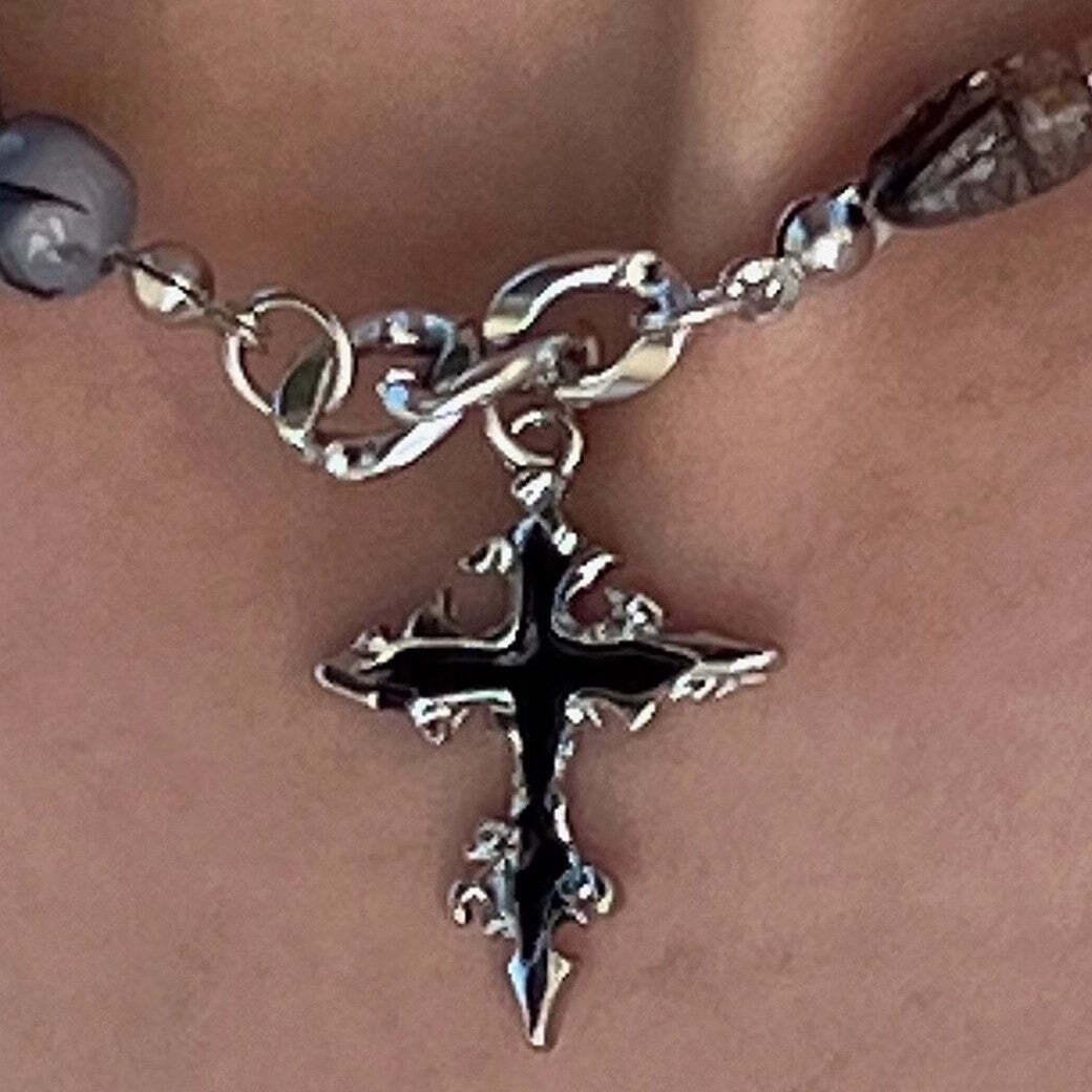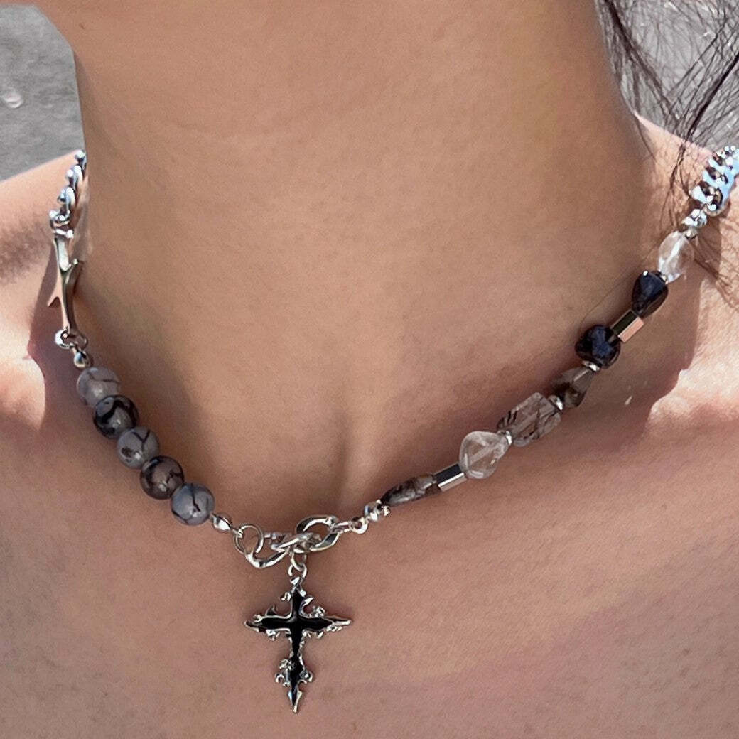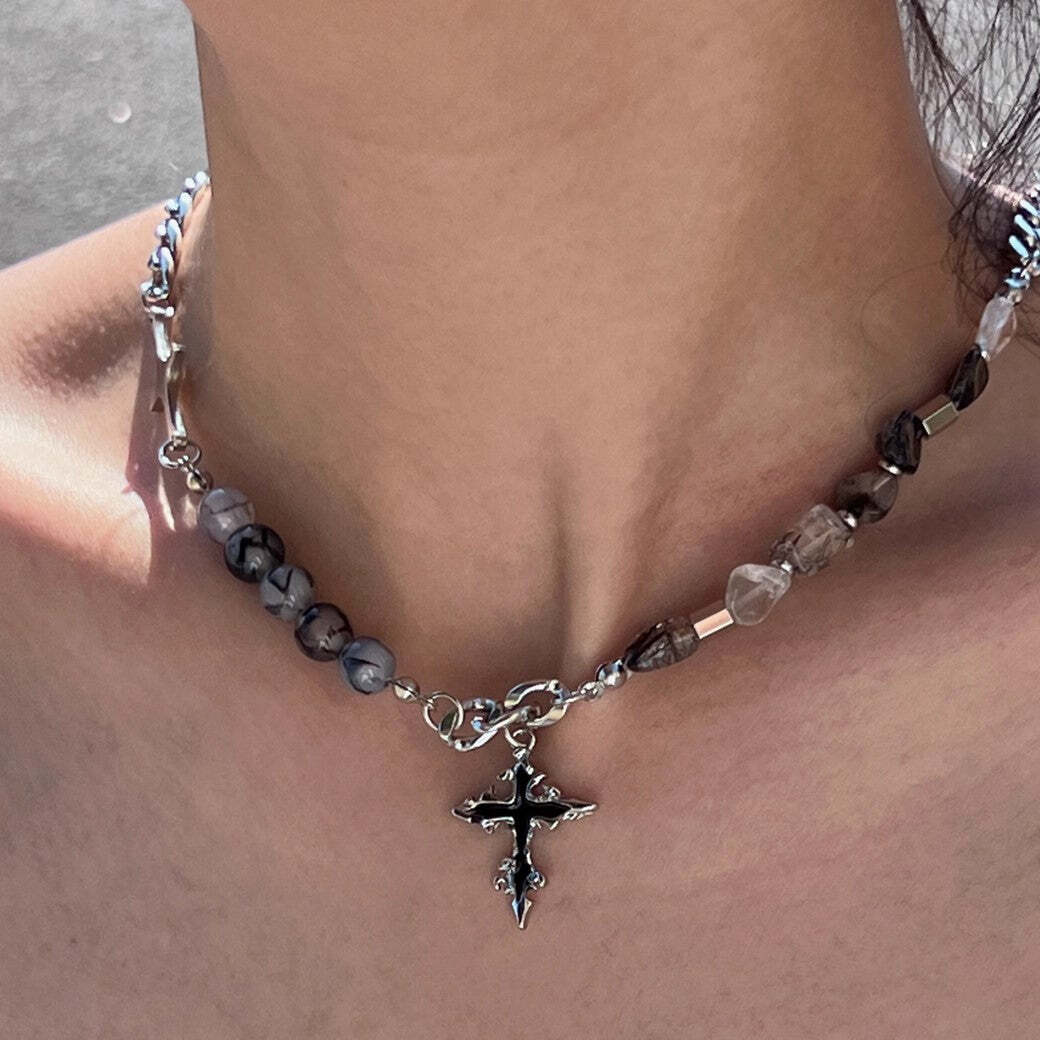 【CHEALIMPID】Stone Multi Design Gothic Mode Cross Necklace 【GL532】