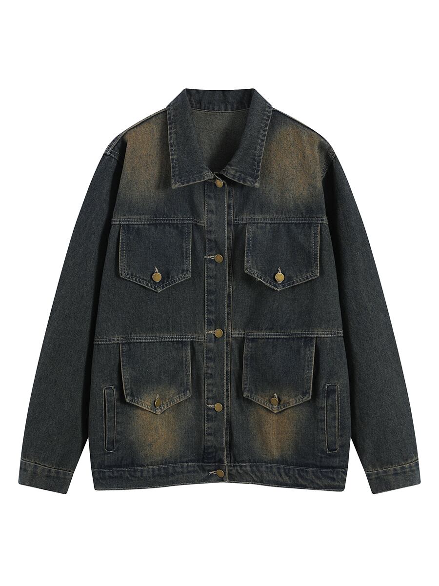 レトロデザイン+ウォッシュ加工+デニムジャケットで、ワークウェアならではの機能性を秘めつつも、贅沢な素材使いで上品さも兼ね備えています‼︎
