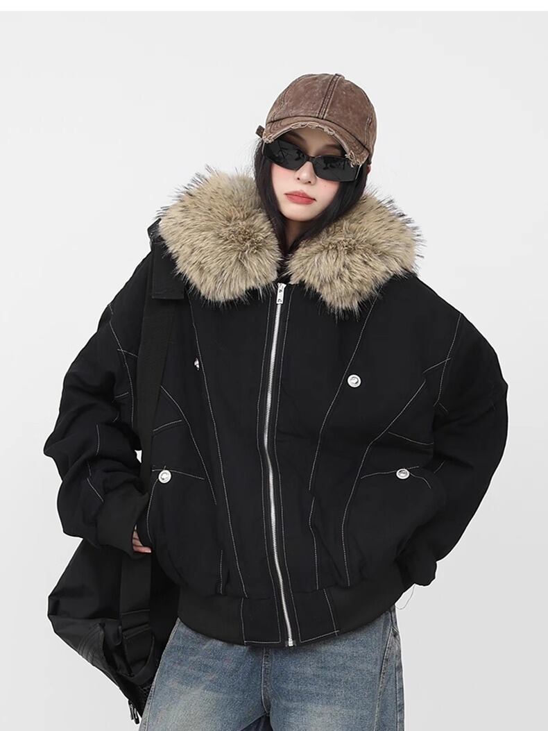 ファーフード付きのオーバーサイズジャケットは、心地よさとスタイルを兼ね備えた一着です!