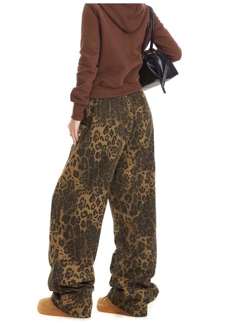 ヒョウ柄のストレートパンツは、トレンド感漂うデザインで、カジュアルなコーディネートにぴったりです!